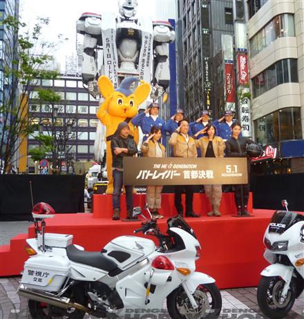 「THE NEXT GENERATION パトレイバー 首都決戦」(押井守監督)のPRイベントが開催。。。 高さ8mの「イングラム」が新宿の路上でデッキアップするイベント。 主演の真野やキャストが見つめる中・・・無事に立ち上がると会場からは大歓声が上がった。。。 平安神宮や姫路城など,全国行脚のイベントもフィニッシュ