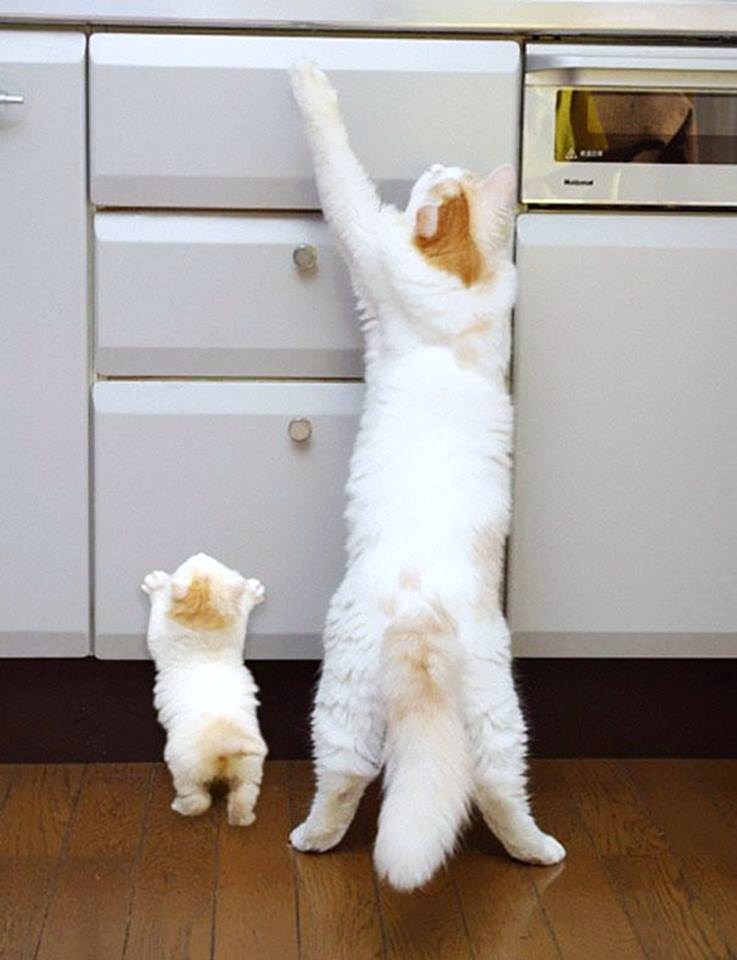 もう,,, 初夏並みの暑さ・・・ 極端ですが・・・雨の心配がいらないと? 割り切って対処しましょう。。。 まだ,梅雨さえ来てないんで・・・ 《癒されたらシェア》さんからシェアしました。 キッチンでの微笑ましい一コマ。。。 ママネコが何を取ろうとしているのかはわかりませんが・・・ 横のチビちゃんも,,, 見よう見真似・・・毛並みの模様まで・・・ DNA間違いなし。。。 見ていて飽きない,,, グッドショットをどうぞ