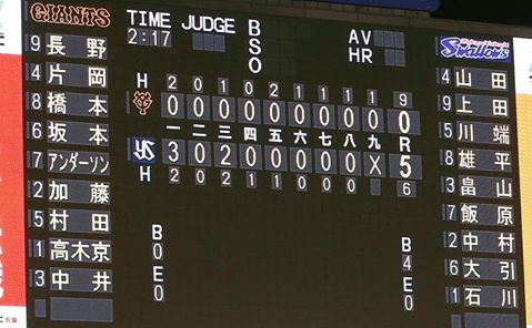 おはようございます。 雲に覆われてはいますが,明るさのある土曜日。にわか雨注意ということで,,,お出かけの方は・・・ 《巨人》 ヤクルト戦。 2-3。 延長サヨナラ負け・・・ ヤクルトとの首位決戦で延長10回にサヨナラ負け,,,3連勝で止まった。 先発のポレダは自己最長の8回を投げ,初ヒットのタイムリーも打ち2失点と好投したが、打線の援護がなかった。 延長10回2アウト満塁で沢村が川端に決勝打を許し落とした。 1番・長野が機能せずでは,,,橋本が複数ヒットでも繋がらない15打席ノーヒットとなった長野は途中交代・・・今日は金城が復帰するのではないでしょうか・・・ 沢村の「不安定要素」もまだあり,しばらくは点差を広げてという形が必要かもしれません。。。 アンダーソンもタイムリーが続いていますし,1番バッターのチョイスが当面の得点力には欠かせないという事になりそうです 投手リレーの選択がキーになった試合ではありましたが・・・ 『打線を太くしないと~』という監督コメントが全てか。。。