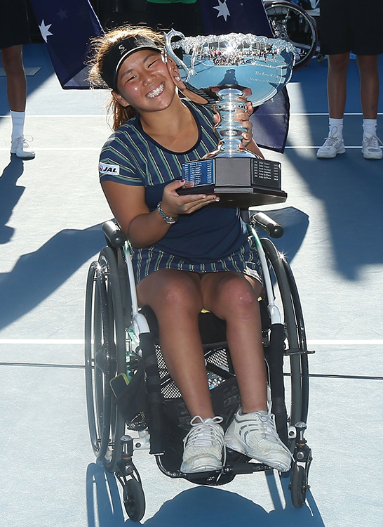 全豪オープン ▽車いす女子シングルス決勝 上地(6―7、6―3、6―3)グリフィユン 車いすの部,ダブルス4連覇の偉業は惜しくも逃しましたが… シングルス決勝で上地結衣が世界1位,グリフィユンを逆転で破り,全豪オープン出場5回目で初優勝を果たした今までは14年、15年の準優勝が最高成績 世界ランク2位の上地はこれまで,14年に全仏オープンと全米オープンで優勝している。今回全豪オープンを制し,生涯グランドスラムで残すのはウインブルドンだけとなった 上地結衣...「グリフィユンを祝福したい。素晴らしい決勝でした。いつもタフな戦いで,今日も楽しんでワクワクしていました。今日は国枝さんがテレビで解説をしていたので緊張もあったんですが、褒めてくれていると思います」 シングルスは,ウィリアムズ姉妹が決勝で28回目の対決 妹-セレナがヴィーナスを下して制覇した