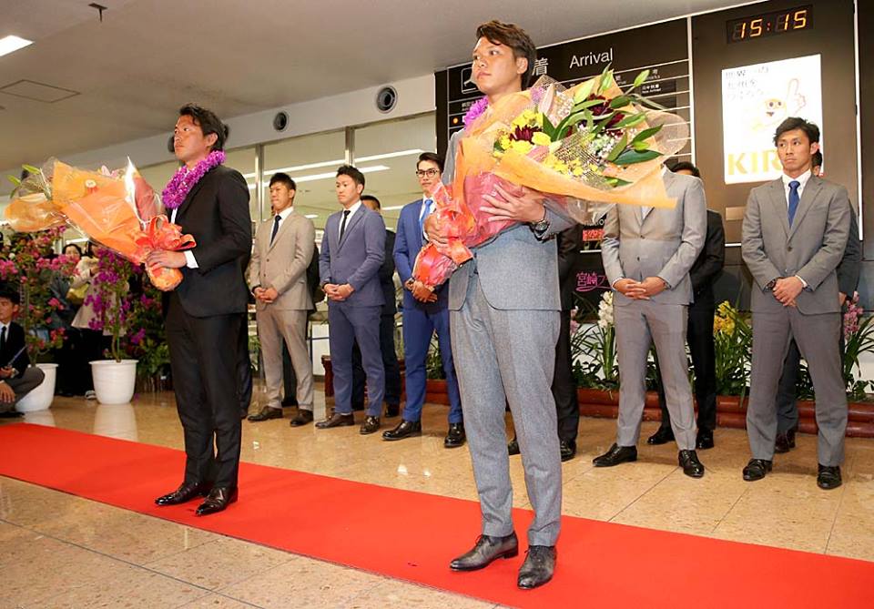 おはようございます 3月並みという気温の予報…お出かけ日和の土日にはなりそうです!! 《巨人》外国人組も来日,キャンプインまで4日…!! 1軍合同自主トレに参加するメンバーが宮崎に入り 空港で地元観光協会による歓迎セレモニーに参加。約300人のファンに出迎えられ,長野,坂本が花束を受け取った主将の坂本は...みんな揃ってやることになるので気が引き締まると 先乗りの阿部,小林は2次練習を打ち上げ今日からの合同自主トレに合流する 外国人勢も来日カミネロ,マギーの新戦力2人は今日入団会見に臨みもうすぐパパになる,マイコラス,マシソン,クルーズも成田へ… 杉内ら2軍スタートのベテランなどを含めたメンバーと3軍の面々,ルーキーたちは,G球場で合同自主トレを開始2軍メンバーは由伸監督,外国人勢と宮崎へ… カウントダウンがいよいよキャンプ目前球春が本格的にスタートします また,JICAの支援活動の一環として,アルゼンチンの子供達に野球教室を実施,アカデミーの古城コーチの派遣が決定