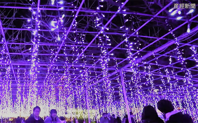 都心と違って,2ケタ気温とはいきませんでしたが… 風のない分,陽射しの暖気は感じられました。 ここのパークのウリは,様々な藤の花なんですが… 開花前という事もあってか… 藤棚をモチーフにしあ見事なイルミネーション ブルーを基調にした,LEDで花を表現し 効果音との連動で,つぼみから開花をイメージ グッドショットをお楽しみくださいませ…