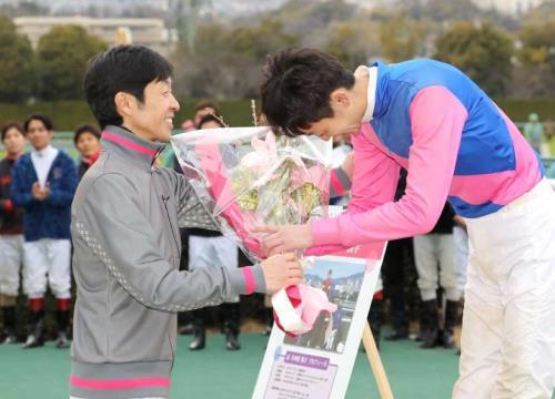 13年に最優秀3歳牝馬に選出されたメイショウマンボなど G1,6勝を挙げた武幸四郎騎手が騎手人生を引退 最終日は6鞍に騎乗。1Rのピンクスターの3着が最高で,最終レースとなった12Rのメイショウオオカゼは9着。土曜の6鞍でも勝ち星はなく,V締めはならなかった 全レース終了後には引退式が行われ,2500人のファンや騎手ら関係者が集まった。 幸四郎は...こんなに沢山の方が残ってくださり,本当に最高の形で騎手人生を終えられたと思います。今も,さっきの最終レースをもっとうまく乗れなかったかと考えているし,今日学んだ事もあります。その繰り返しでした。20年間,自分なりに精いっぱい頑張ってきました。関係者の方に恵まれましたし,ファンの方の声援のおかげで頑張ってこられました。本当に人に支えられて,やってこられました。これまでの馬に教えてもらった事を,これから出会う馬に生かしていきたいです。また調教師として馬を出走させますので応援しに来てくださいとあいさつした。 引退式ではメイショウマンボの松本オーナー,武豊らが花束を贈呈。最後は騎手仲間による胴上げで8度舞った 最後まで涙はなくムチを置いた。通算9121戦で重賞28勝を含む693勝 偉大な父と,兄と比較されるという…プレッシャーと騎手として大きなハンデとなる177cmの長身との戦いに幕を引いての第2の人生にグッドラックです