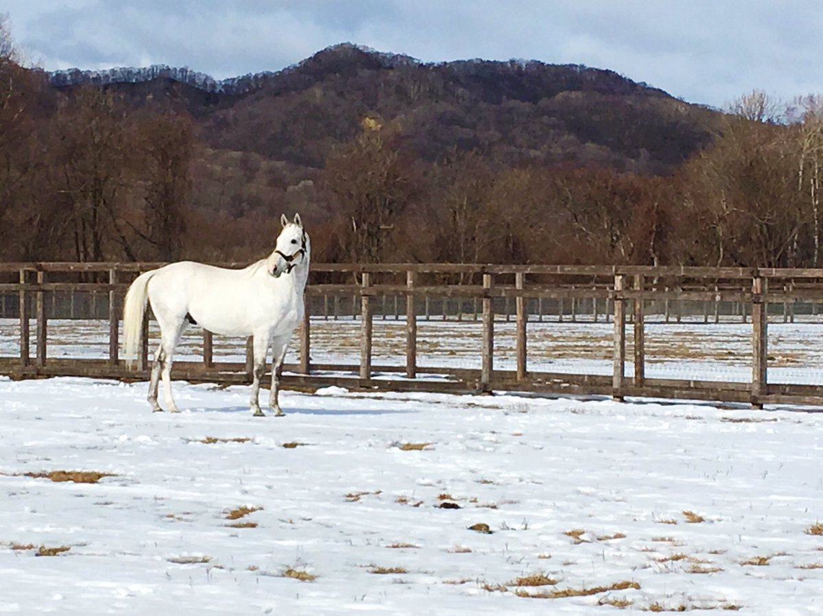 芦毛の怪物もすっかり…白馬です パパ生活を送りながら,悠々自適のようですが… 柵越しに寄ってきた,放牧中のダノンシャンティーには 思いっきりいななく元気ぶりだそうです 初子も生まれて,,,まだ一緒の生活 いつまでも元気で,ディープ並みに強い子供を…