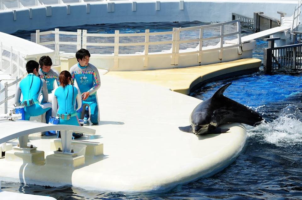 昼前から、南風が強まっての夏日… 水分補給、熱中症対策に十分ご注意を!! 京都水族館のプールサイド… スタッフが打ち合わせ中に、イルカ君,サプライズ登場 素で驚いてる表情がいいですが… 何してるのとばかりのライドオン しばらくして女性スタッフに手を振られ… じゃあね~と…尾びれを挙げて水中へ… これも、信頼感の成せるというやつでしょうか