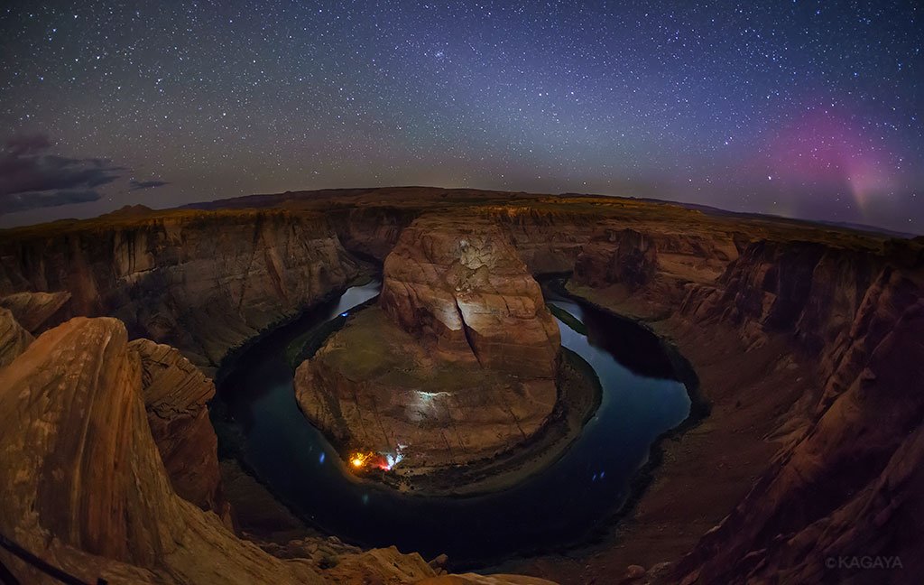 不安定予報の割には,陽が出てます… 明日は夏日に届かないとの事ですから… ギャップにご用心を!! この絶景ショットが偶然の産物とは… プロカメラマン.KAGAYA氏の作品ですが めったに現れないという、アリゾナで… 狙った構図は谷底のキャンプファイヤーだったそうで そこに、予想外のオーロラが映りこんだ1枚 持ってる人は違います