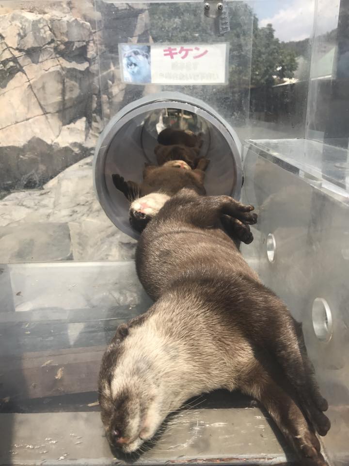 曇天のまま、それでも夏日でした… 金曜日に傘マーク うっとうしい2-3日になりそうです。 姫路セントラルパークのカワウソ一家 川の流れのようと思えば…ですが… 一直線、縦列駐車と見る方がでしょうか ともあれ、仲良くの家族ショット… ロケーションはさておいて…