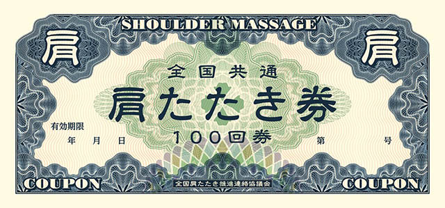 紙幣に書かれたのは『肩たたき券』 全国肩たたき推進連絡協議会という謎の団体が発行しているようで 100回券なので? 1枚で100回も叩いてもらえます 架空御紙幣を製作している olo さんの作品です 期間限定、28日まで全国にあるセブンイレブンのマルチコピー機に予約番号『38106332』と入力すると…何枚でもプリントアウトできます。 父の日に備えてプリントしておくのも