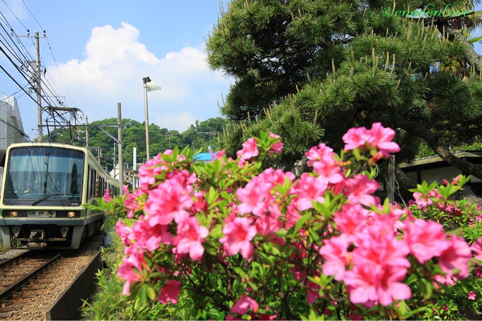 陽射し強烈で真夏日手前… 明日からは曇天予報,気温高めとはいえ,ご油断なく!! 久しぶりに江ノ電… 軒先の花とのコラボは、ツツジになっています 5月も終わりに近づいて… 来月になると、アジサイが待ってます 名物の絶景を前に、ピンクのかわいい花との2ショット 雨の季節の前の青空をバックに…