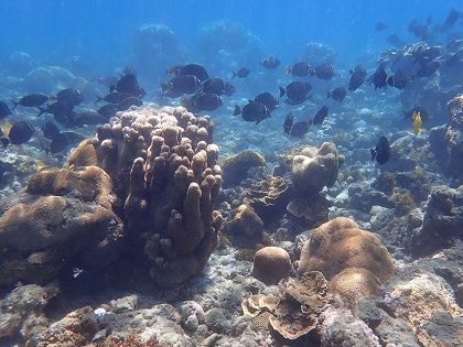 薄雲は直射日光のガードにならず…猛暑日の日曜日。明日も、猛暑日警戒にご留意ください。 小笠原ビジターセンターのシェアは…西の浜の海中ショットスジグロハギの群れが,悠然と泳ぐ姿が…中に、数匹のキイロハギもブルーとブラックに,イェローのアクセントシュノーケリングには…