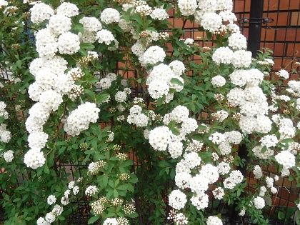20度までは届きませんでしたが…陽射したっぷりの18度明日は雲多めでも,気温は同じくらいと…気温差には,ご注意の上でお過ごしください。 園内では,八重桜も見頃のようですが小さな花が集まって,丸い形になるコデマリが見ごろに…管理事務所の横で,風に揺られています手毬のような、外観が名前の由来ハナミズキとは,違った趣の白い花です連休中の目の保養にも…