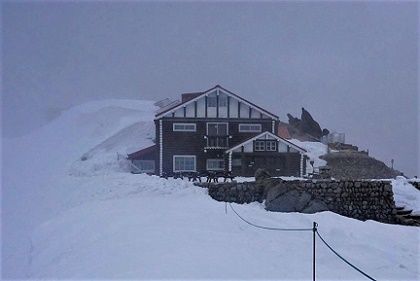 寒の戻りの連休初日でした…雨は上がっても,雲に遮られて13度。1ヶ月以上、暦が逆もどりの1日明日は、少し気温も戻りすですがご油断なくお過ごしください。 一昨日、雨が降ったという、燕岳山荘雪解けが進み、今日からの連休にも準備がはかどっていたそうですが…一転の大気不安定で,この積雪…20日から,春の営業再開したばかりで…ライチョウのラブシーズンも厳しい天候になってしまってスタッフさん総出の除雪中まだまだ、冬登山ですね… 」