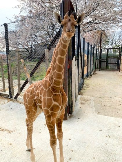 暑いと思うような22度…昨日から3度のアップでも体感は↑朝方への気温降下はまだ大きいのでピークは過ぎたとはいえ、ご油断なく。 園内のソメイヨシノも大分散ってしまった姫路セントラルパーク葉桜にはなっていませんが…桜をバックにカメラ目線はキリンの赤ちゃん"りりちゃん"足元はしっかり、シャキっと立っていますが角はまだまだ、ベビーサイズ…チビちゃんらしさが、愛らしくて