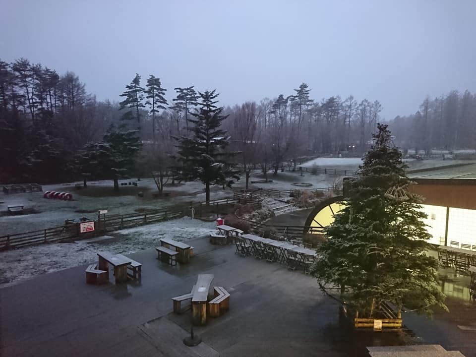 朝9時で6度の気温は,かろうじて10度…陽射しがあっても寒気が勝って…明日も冬晴れとなりそうですのでご油断なくお過ごしください。 富士山の裾野までの雪化粧はニュースなどで流れていますが…山中湖畔にも昨日、初雪がちらついたと何度かご紹介している、ドッグリゾートwoof山中湖畔のすぐ傍にある,広大なドッグランや施設が充実していますが…昨日の寒気で初雪がうっすら雪の量は結構多いのですがまずは、最初の一歩という事で今年も立派なツリー設置済み
