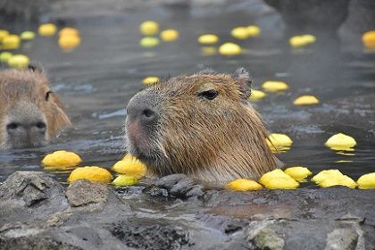 冷たい雨が夜には,一旦、上がりそうですが…気温ギャップにご注意ください。週明けまで,雨模様ですので… 伊豆シャボテン公園名物元祖、カピバラの露天風呂が今日からスタート開始前はお湯がたまる前に石の浴槽に入って,ウロウロそわそわ…飾りの草をくわえたり…お湯が溜まってからはタップリのゆず湯にご満悦来年ネズミ年の4月までです…