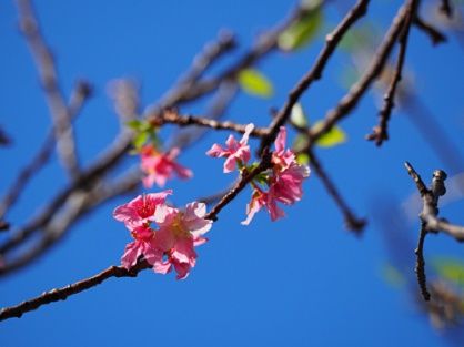 午前中に雨が上がってから,晴れ間も…午後からは,雲量びっしりの曇天ヘルパー君が,暑いというほどの19度明日の雨予報は変わっていませんのでご油断なくお過ごしください。 自然の成しえた珍現象というべきか小笠原ビジターセンターでは先日通過した台風の影響ですっかり葉の落ちた,ヒカンザクラが通常の開花は,1月ころだそうですが落葉で栄養分の供給が,早まったのか2か月近く早い光景が…