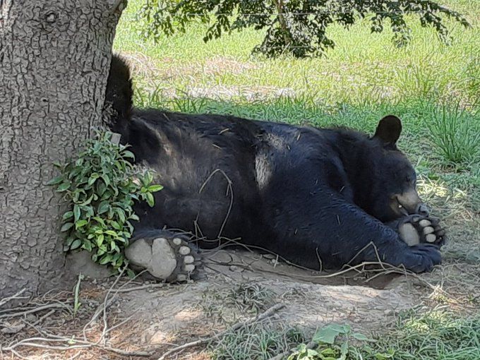 8月の猛暑日日数を更新した都内。新たな感染者は,247人。9月半ばまで猛暑が続きそうですし体調管理にご自愛ください。 猛暑の秋吉台サファリランド~~時折、木登りをして枝の上で昼寝をする事もあるという…アメリカクロクマのケント君完全にリラックスモードで暑さをしのぐように木陰を見つけてうたた寝…足裏もくっきりと…