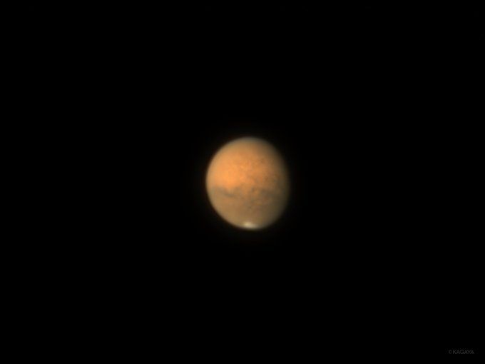 8月最後の日曜日も猛暑日新たな感染者は,200人を切っても148人という数字。感染対策と併せて,熱中症警戒でご油断なくお過ごしください。 KAGAYA氏が望遠鏡を使っての1枚夏の夜空の赤い星、火星10月に最接近するそうで…極冠とよばれるという下部の白い部分が,季節を追って小さくなっていると…これも,宇宙の未知の部分でしょうか