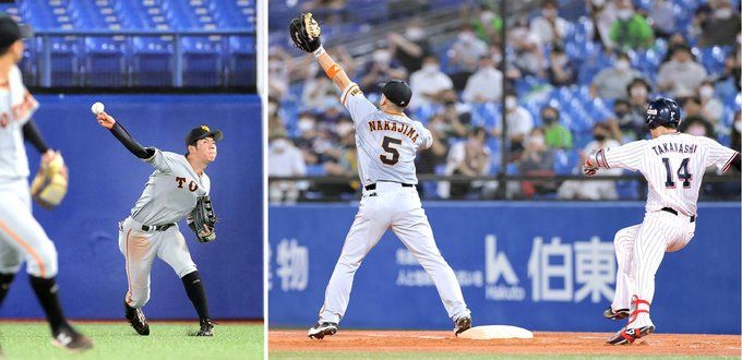 おはようございます。朝方7時前に,強い通り雨があった世田谷も日差しが出ていますが…今日も,天候急変にご注意ください。熱中症警戒アラートも発令中。《巨人》ヤクルト戦。5-2勝利!! 3試合連続2ケタ安打!! 試合後の監督コメントで...満塁ホームランに値するビッグプレー逆に流れがこっちに来たと称賛した松原のライトごろ封殺などで3連勝で今季貯金最多の134回2アウト3塁炭谷の今季1号となる,ライトポール直撃と吉川尚のタイムリーの2点リードで…松原がライト線よりに前進守備を取り中島に"ライトゴロ行きます"と予告その通りに,高梨の打球がライト前に前進してキャッチすると予告通りに強肩を利したスピードボールを中島に送って,見事に予告達成 戸郷が,フォアボールの多い内容で不安定ながらも5回を投げ切りおととい同様に,5人で継投5球団から勝ち星を挙げて7勝目亀井も3番スタメン復帰今日以降は,監督判断という事で大城と岸田以外の野手を全員起用ブルペンも田中豊、中川以外を細目に登板させる総力戦で3タテ対ヤクルト戦6連勝で今日からドームで中日戦リベンジへ…