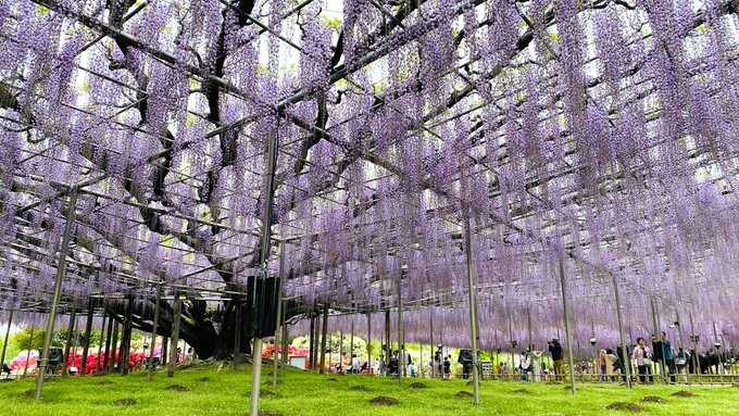予報通りの28.2度。熱中症対策にもご注意の上で体調管理にご自愛ください。 あしかがフラワーパーク~~パーク内では,代名詞であるフジの花が見頃に…ウスベニフジの棚も見事に咲き誇っていますし…メインとも言えるオオナガフジも紫の圧巻の光景を創り出していますGWで人気ですから大変でしょうが目の保養に絶景が広がっています
