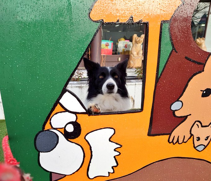 昨日から一転の14.7度。明日以降は師走らしい気温の予想。防寒対策にご留意の上暖かくしてお過ごしください。 秋吉台サファリランド~~顔出しパネルから覗いているのはボーダーコリー君動物飼育の専門学校である福岡ECO動物海洋専門学校とのプロジェクトとして生徒さんがデザインしたグッズを販売中この顔出しパネルも,生徒さんのデザインした物だそうです