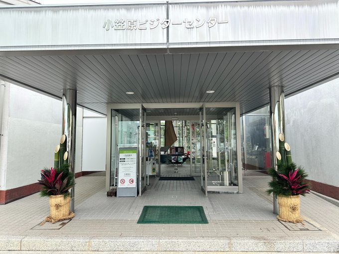 大晦日は14.6度。防寒対策にご留意の上暖かくしてお過ごしください。 小笠原ビジターセンターから~年末年始も開館されるそうで正面玄関に門松を設置小笠原らしい南国風で…すべてを島内の植物により作成明日は,新年恒例の海開き『初泳ぎ証明書』が貰えます
