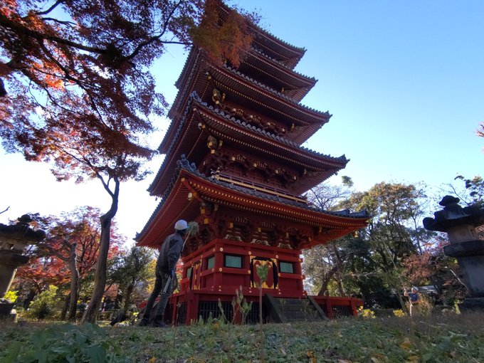 予報を上回る16.8度の冬至。明日が冷え込みそうですから防寒対策にご留意の上暖かくしてお過ごしください。 上野動物園~~師走らしい光景の1枚昨日,園内にある,五重塔のすす払いが行われたそうで…園内で動物たちのご飯に利用されている竹林を間引いた物の再利用で作られた竹ほうきで,軒先などを清掃新年に向けた準備が一つ終わりました