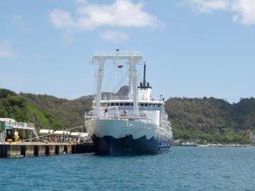 曇天ながら27.8度。土日に雨予報ですから体調管理にご自愛ください。 小笠原ビジターセンターから~おがさわら丸が点検のドッグ入り年に1度のさるびあ丸が入港通常の小笠原丸と違う時間の今日の10:30に出港したそうで…明日の15:30に竹芝桟橋着日中の違う景色が楽しめると