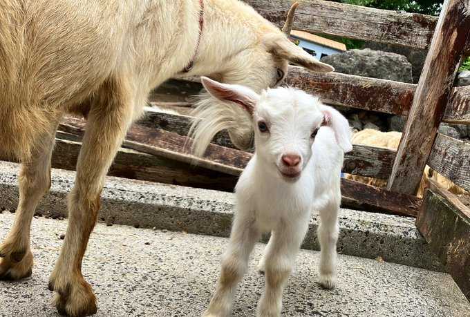 もうすぐ降り出す曇天で21度。夜の間の大雨とはいえ厳重警戒でお過ごし下さい。 秋吉台サファリランド~~バーバリーシープに続く様に5/14にヤギの赤ちゃんが誕生お母さんは,初産だそうですが上手に子育てをしているとの事すくすく元気に成長中…カメラ目線でしっかり笑顔