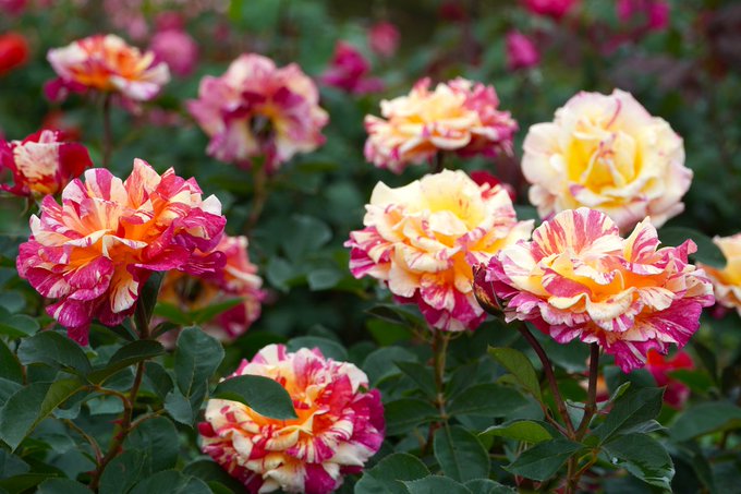 曇天の週明けは22.8度。気温ギャップにご注意の上で体調管理にご自愛ください。 ひたち海浜公園~~園内の常陸ローズガーデン早咲きのバラが開花クリーム色ベースに複数の色が混じった品種の花が見頃梅雨の走りが近づいてきて…花々の季節もまた一歩