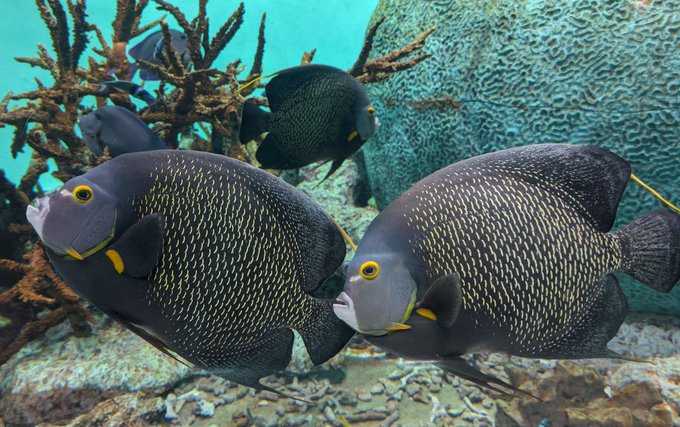 晴れたり曇ったりの31.9度。天候急変にもご注意の上で体調管理にご自愛ください。 葛西臨海公園~~館内のカリブ海水槽カラフルなイメージのあるエンゼルフィッシュと一味違うシックな色合いの2匹フレンチエンゼルフィッシュまだまだ知らない事が多いです