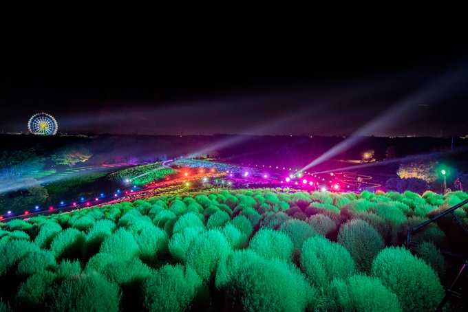 晴れたり曇ったりの27.8度。寒暖差にご注の上でご油断なくお過ごしください。 ひたち海浜公園~~みはらしの丘では,コキアが一部で色づいてはいるものの…『緑葉見頃』と紅葉は遅れ気味それでも昨日まで毎年恒例のライトアップイベント…気温の秋気配でここから一気に紅葉が進むでしょう