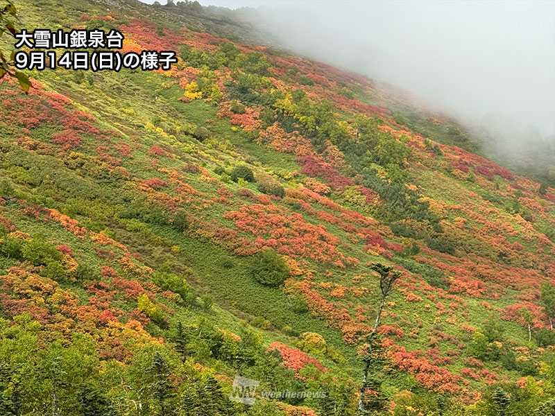 晴れたり曇ったりの26度。朝晩の気温差にご注意で体調管理にご自愛ください。 ウェザーニュースのシェア~~都内も秋めいてきましたが…日本最速で紅葉が始まるという北海道・大雪山系で紅葉が見頃になったそうで…銀泉台付近は鮮やかに色づき旭岳付近は残暑の影響もあり例年より遅れ気味との事