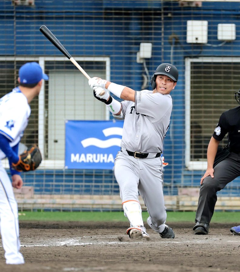 石塚は,2軍の練習試合で初ヒット