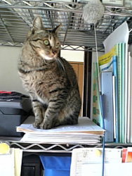 FAXの棚からパパちゃんのお仕事ぶりを見てたにゃ。