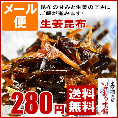 先月末、期間限定ポイントで申し込んであった商品が届きました 送料込280円なので、利用しやすいですね 【要●ご確認】※メール便 限定◆同梱不可 ◆代金引換不可◆お届け日、配達時間指定不可◆ギフト対応不可生姜(しょうが)と昆布(こんぶ)、たっぷり♪『生姜昆布 100g前後(簡易包装袋入り)』