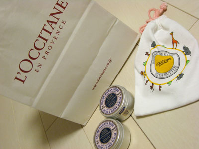 またもや久々の更新です(汗)。今日は、久しぶりに午前中は英会話サークルへ体を動かすのって楽しい♪先生ともあと少しでお別れ・・・と思っていたのですが星ヶ丘でもレッスンがあるそうで、入園後も続けられそうです!でも母子分離になっちゃうの。寂しい。。。その後、たぷ子ちゃん&シフォンちゃんと天白公園で少し遊びランチへ。美味しくてボリューム満点でとってもお得なランチでした♪久々にいっぱいおしゃべりできたし、心もお腹も大満足。ありがとう二人とお別れした後、息子が急におトイレに行きたいというので「B・Kids」を見つけて慌てて入りました。そこでトミカを発見!先日タカシマヤでランチした時にお店にあり「欲しい!」と言っていたコカ・コーライベントカーがなんと100円!(昨日は嬉しかったようで握り締めて寝ていました☆)も少し黄ばんでいましたが同じく100円だったので買っちゃいました。そして、東京から出張で名古屋にきていた妹と合流。ラ・シックへ行きました♪乾燥肌の息子に「ロクシタンシアベイビースキンバーム」を購入。(TOPの写真です♪)いつも私が使っているロクシタン ピュアシアバターより柔らかいのでのびもよく使い心地もいいです。パッケージも可愛い☆ベビーマッサージにも使えるそうですがちょっともったいない感じ。ちなみに私が購入したプチサック付きのは2月14日までの期間限定商品だそうです。最後にアンジェリーナでケーキをテイクアウトして帰りました。名古屋限定「和栗のモンブラン」甘さ控えめで絶品でした~。(実はリピーターです)おうちに帰る車中で機関銃のようにお話しする妹に「ねーねはママとしゃべりたいんだね。」とちょっとあきれ気味の息子が面白かったです。確かにねーねはおしゃべりだものね(笑)。到着すると、大好きな国旗のカードで遊んでもらいました。4月にも出張があるかもしれないそうなので、その時はもっと遊んでもらえるといいね。