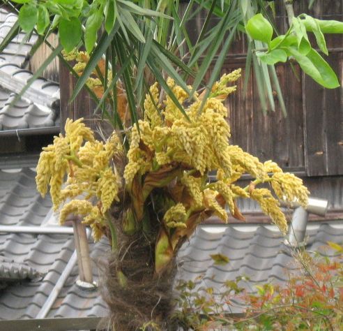 隣家の庭のシュロの木には、今年も立派な蕾がブクブクと吹き出すように育っている。
