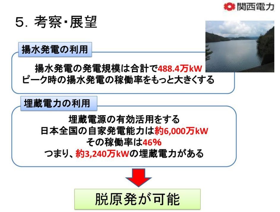 関西電力の発電について、当時、~脱原発の可能性を考える~として有識者が考察している。