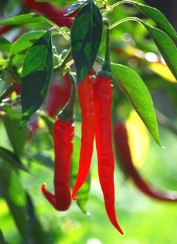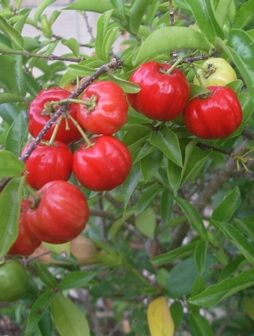 左から ベニカナメモチ、唐辛子、アセロラ、ザクロ石