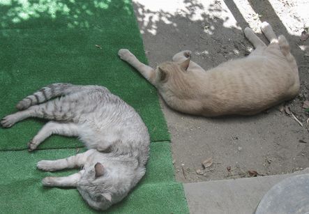 暑からず寒からず、猫も何処といって場所を選ばずに好きなところで寝そべっている。