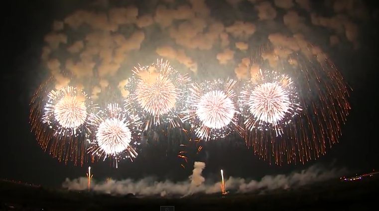 世界最大の四尺玉を上げる小千谷市の 「片貝まつり」 。1985年(昭和60年)に打ち上げに成功して以来2種類の四尺玉を守り続けている。9月9日・10日の夜10時に打ち上げられる。