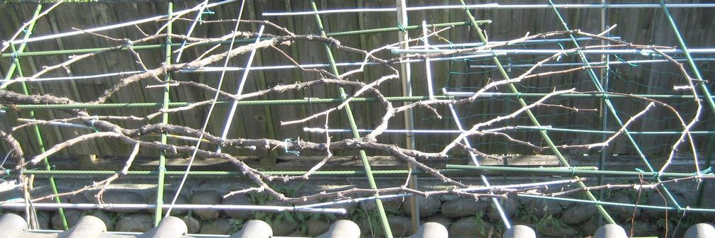 去年の剪定よりもかなり大胆に剪定したつもり。夏前には、整枝、摘果して更に良いものだけを選んで残し70房ぐらいまでに抑えたい。