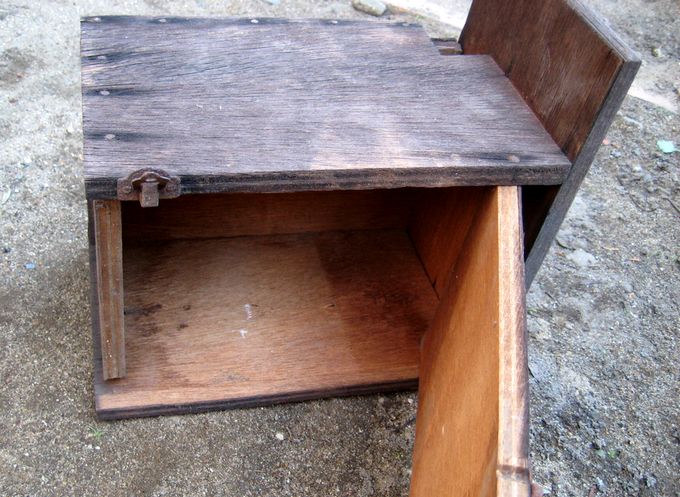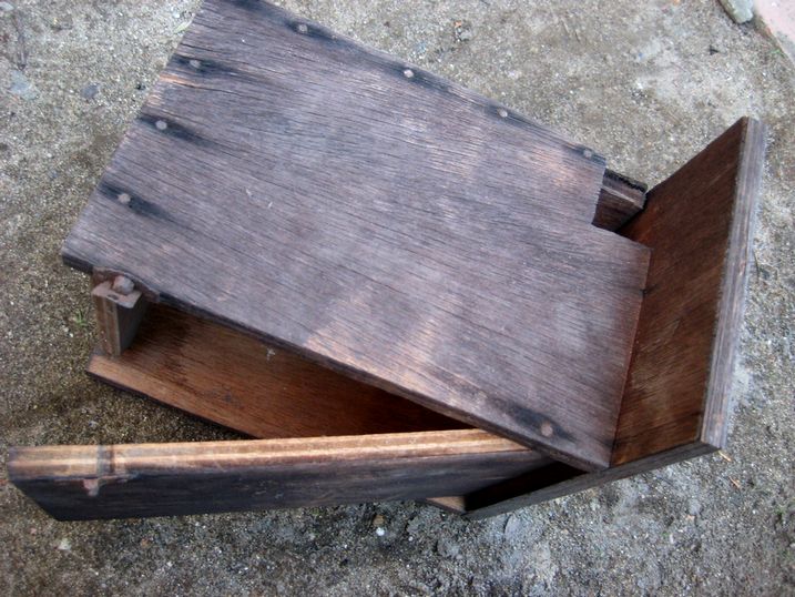 20年以上前に取り付けて、もう鳥が寄り付かなくなった巣箱をリメイクしようと思い、二階の外壁から取り外した。