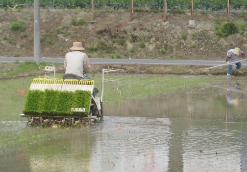 ♪  小規模の稲作にしも人手なくダウンサイズの田植え機がする