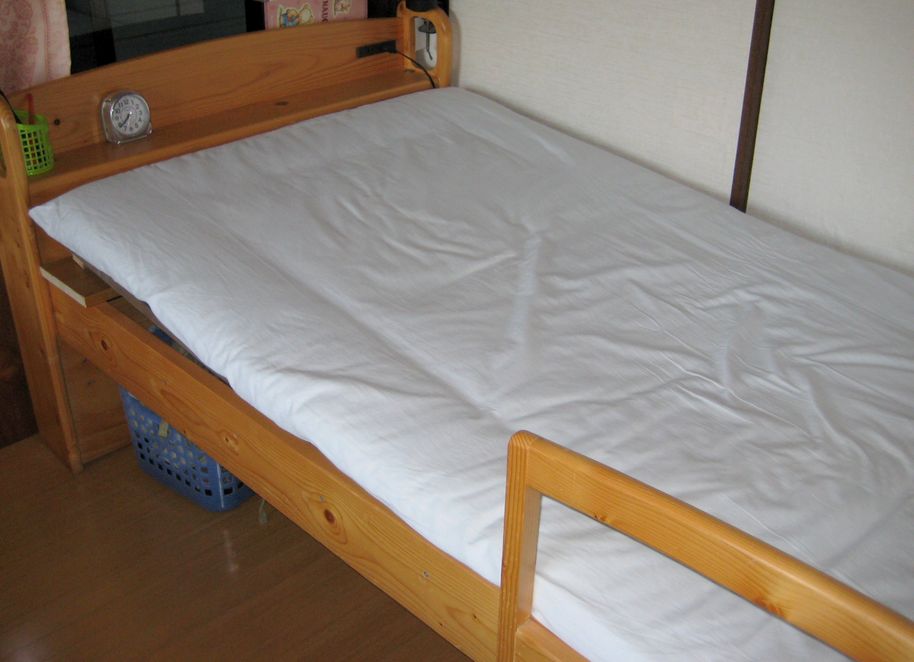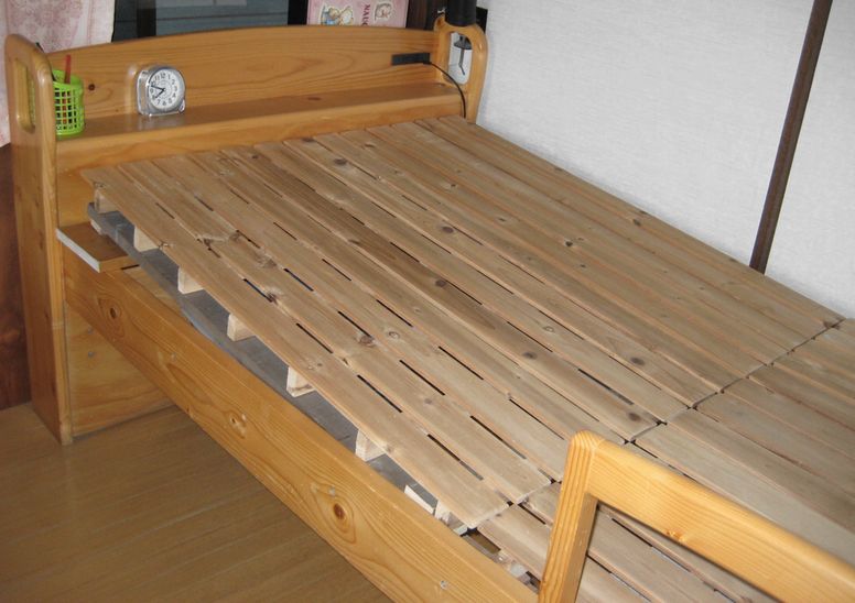 スノコベッドは、スノコが半分ずつ分かれるようになっているので、上半身の部分の頭の方を15cmほど高くしたのだ。その後、胸やけなどの症状は全く起こらなくなったので、この対策は正しかった様だ。