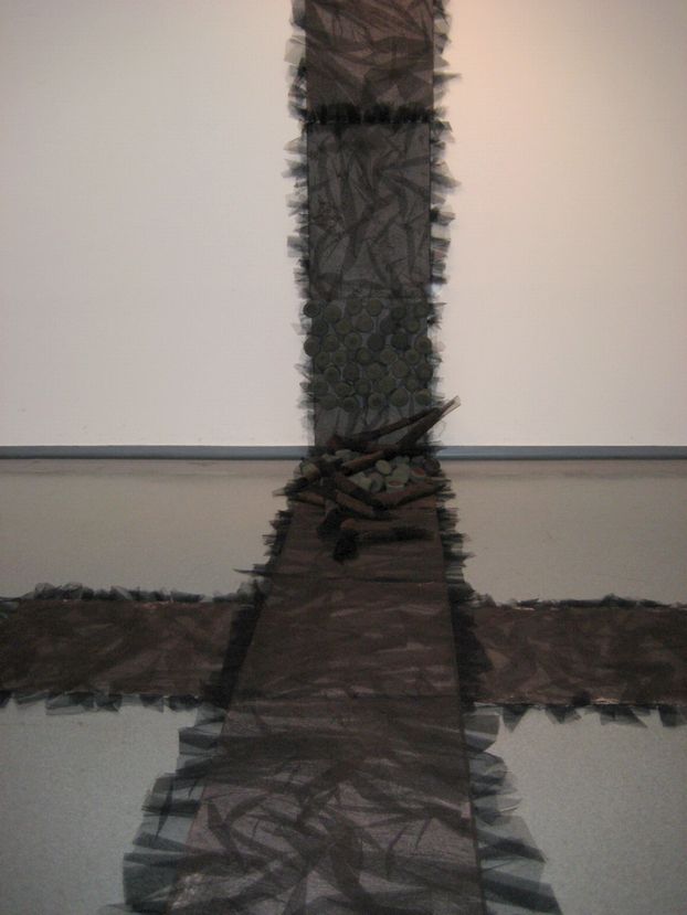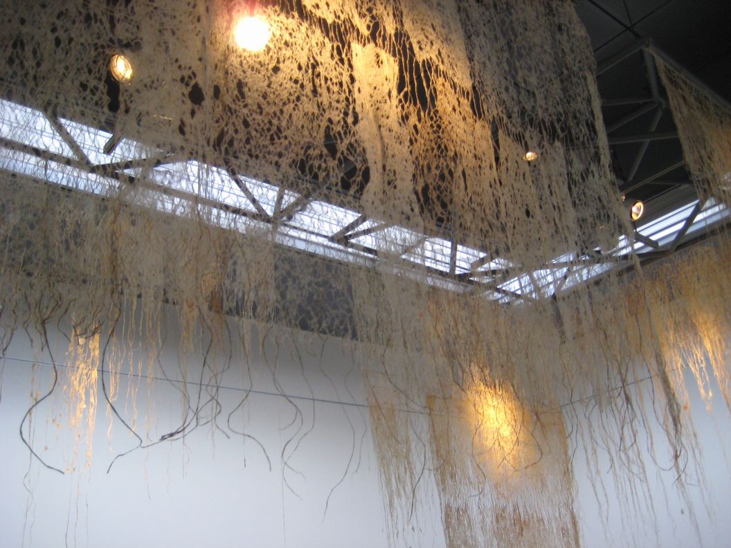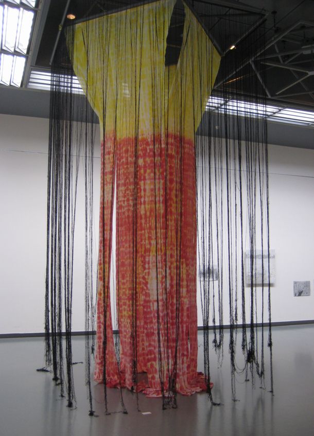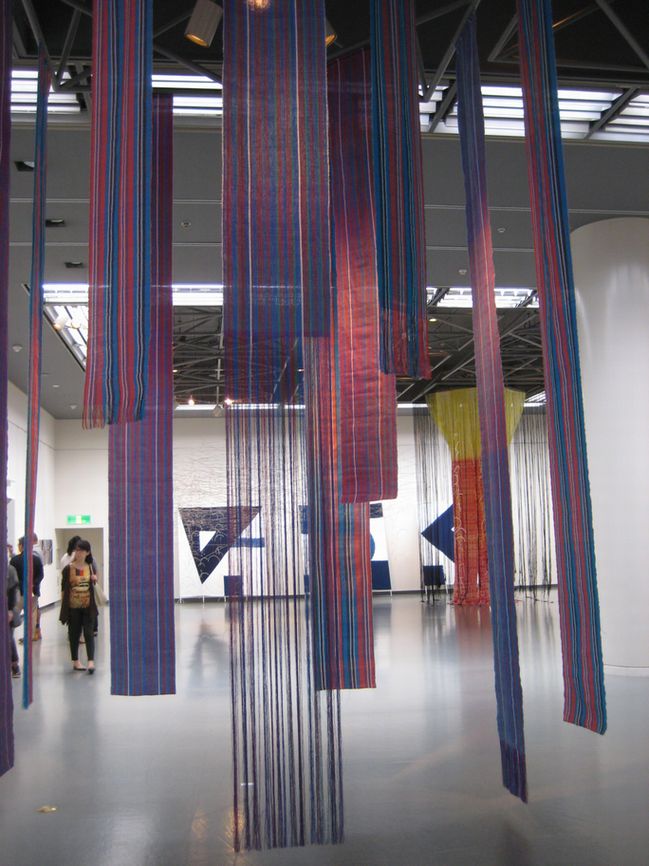 重量物では決してないファイバーのクループ展。糸と布、麻や紙の繊維そのものなどを素材としたファイバーアート。それら新しい造形の試み。ベテランと若手が、試行的な作品と深く追求しているものとが混在している感じ。