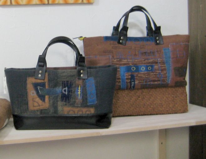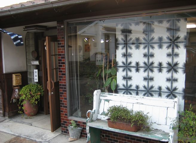「ゆはたや」 は「有松絞り会館」の真向かいある。オーナーの一人・岡崎さんは、1992年11月に名古屋で開催した「第一回国際絞り会議」の時の私と同じ展覧会委員の一人。当時はコンセプチュアルな作品を創っていた人。鳴海に住んで、自転車でこの店へ通っては、店の奥で作品を創りつづけている。