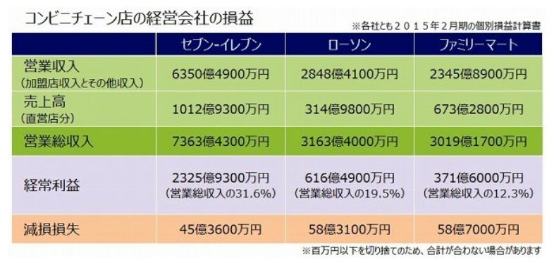 セブンイレブン-ジャパンは、親会社のイトーヨーカドーを上回る程になったが、営業総収入の大きさだけではなく、経常利益も際立っている。営業総収入に対する 「経常利益」の率 は何と 31.6% と、驚異の数字を実現して他を圧倒している。