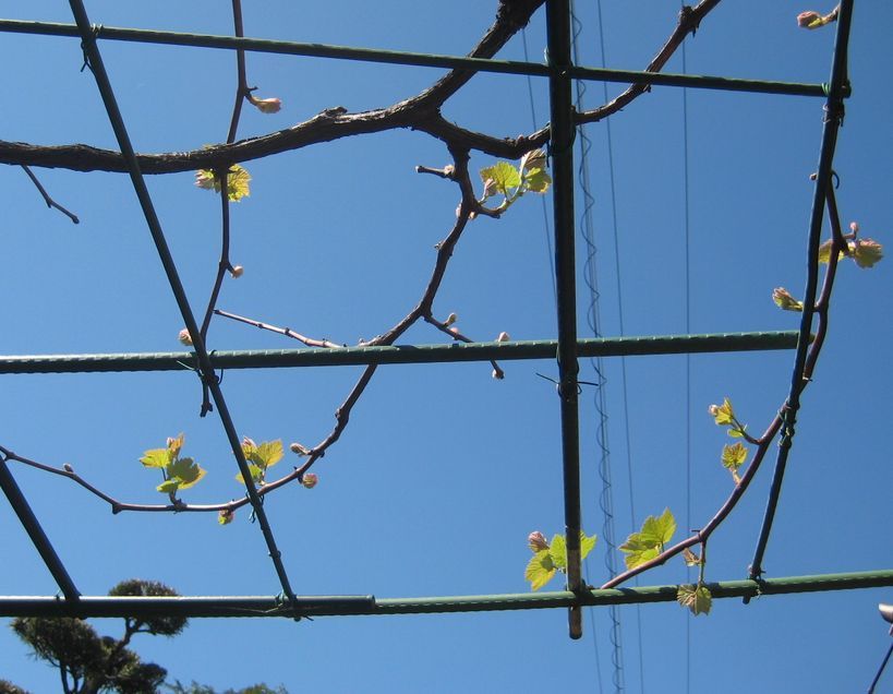 ♪ やや遅れて葡萄に若芽ふき出でぬ吾が為すことの捗(はか)ゆかぬまま